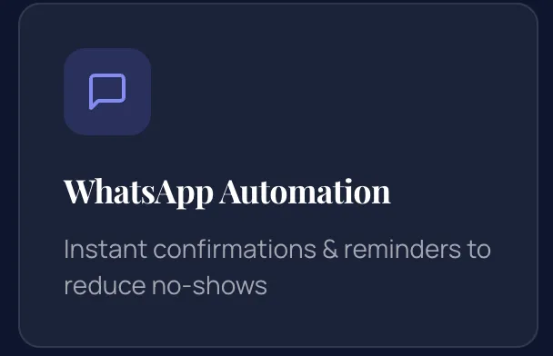 FlowHub offers fast, frictionless booking flow with automated confirmations, smart availability rules, no-show protection with reminders, and full integration with CRM & WhatsApp.